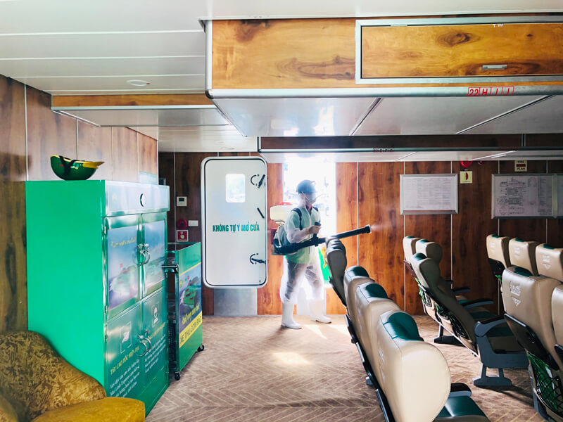 Trước tình hình dịch COVID-19 đang diễn biến ngày càng phức tạp ở nhiều địa phương trong cả nước, chiều ngày 8/5/2021 Công ty Cổ Phần Mai Linh Tây Đô đã tiến hành phun thuốc khử khuẩn toàn bộ các khoang, khu vực làm việc của tàu cao tốc Mai Linh để phòng chống dịch COVID-19 lây lan.