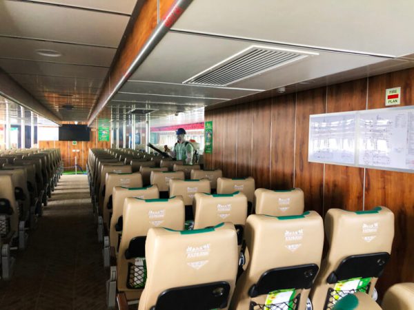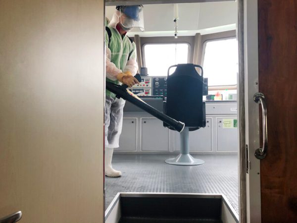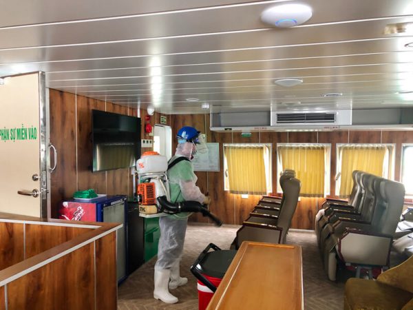 Tàu cao tốc Mai Linh Express phun thuốc khử khuẩn phòng, chống dịch COVID-19.